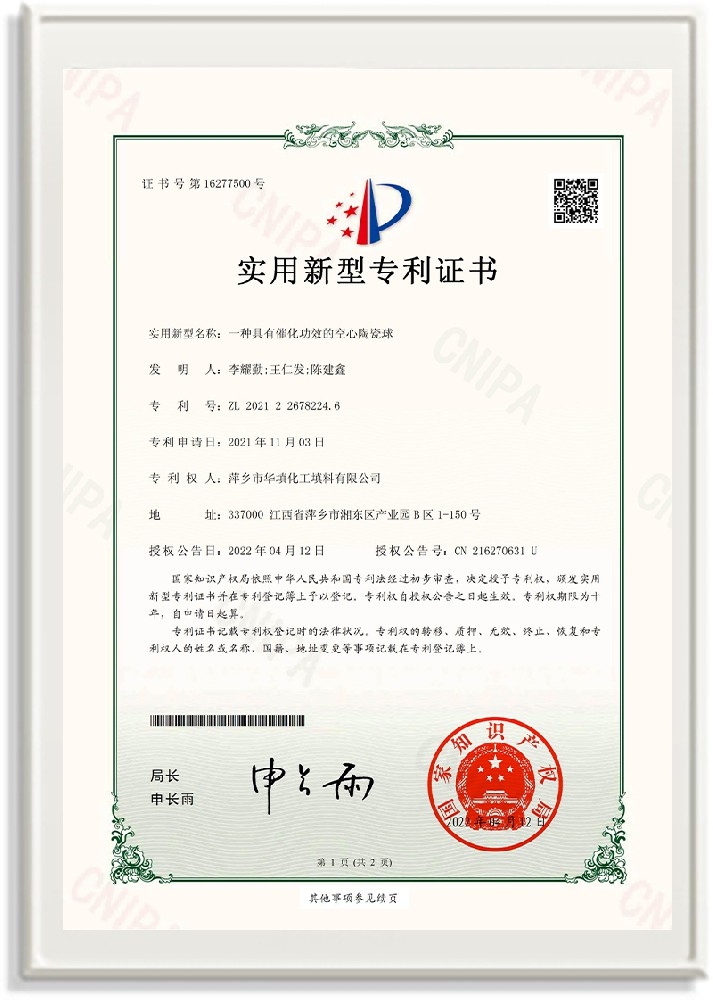 萍鄉(xiāng)市華填化工填料有限公司,位于320國(guó)道、109國(guó)道、浙贛鐵路、昌金高速公路貫穿其中,交通便利,是江西西部一顆燦爛明珠,創(chuàng)建于20世紀(jì)70年代初期,是中國(guó)石油天然氣股份有限公司“能源一號(hào)網(wǎng)”會(huì)員企業(yè)、中國(guó)石化物資采購(gòu)電子商務(wù)網(wǎng)絡(luò)和中國(guó)海洋石油總公司采辦業(yè)務(wù)系統(tǒng)成員單位,是上海大學(xué)江西材料基因組工程產(chǎn)業(yè)研究院工業(yè)陶瓷產(chǎn)業(yè)創(chuàng)新聯(lián)盟基地,且通過ISO9001:2015質(zhì)量管理體系、ISO14001:2015環(huán)境管理體系、ISO45001:2018職業(yè)健康安全管理體系認(rèn)證的化工填料生產(chǎn)企業(yè)。公司擁有陶瓷、塑料、金屬填料、催化劑、活性氧化鋁、分子篩等產(chǎn)品生產(chǎn)線,現(xiàn)有固定資產(chǎn)3616萬(wàn)元,占地面積3.8萬(wàn)平方米。公司具有悠久的生產(chǎn)歷史、雄厚的技術(shù)力量和先進(jìn)的生產(chǎn)工藝設(shè)備,可生產(chǎn)工業(yè)瓷球(支撐劑)、陶瓷、金屬、塑料質(zhì)的規(guī)整、散堆化工填料及分子篩、催化劑、生化濾料、活性氧化鋁、石化助劑、活性炭、環(huán)保材料、耐火材料等系列的200多種規(guī)格型號(hào)產(chǎn)品。